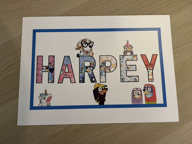 PLEASE NOTE TO DOUBLE CHECK NAMES ARE SPELT CORRECTLY AND THESE ARE JUST THE A4 DESIGNS NO FRAMES INCLUDED.
