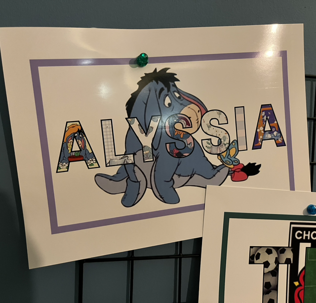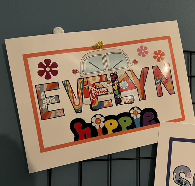 Each name art is printed on glossy photo paper and delivered in a cardboard envelope to protect the design.